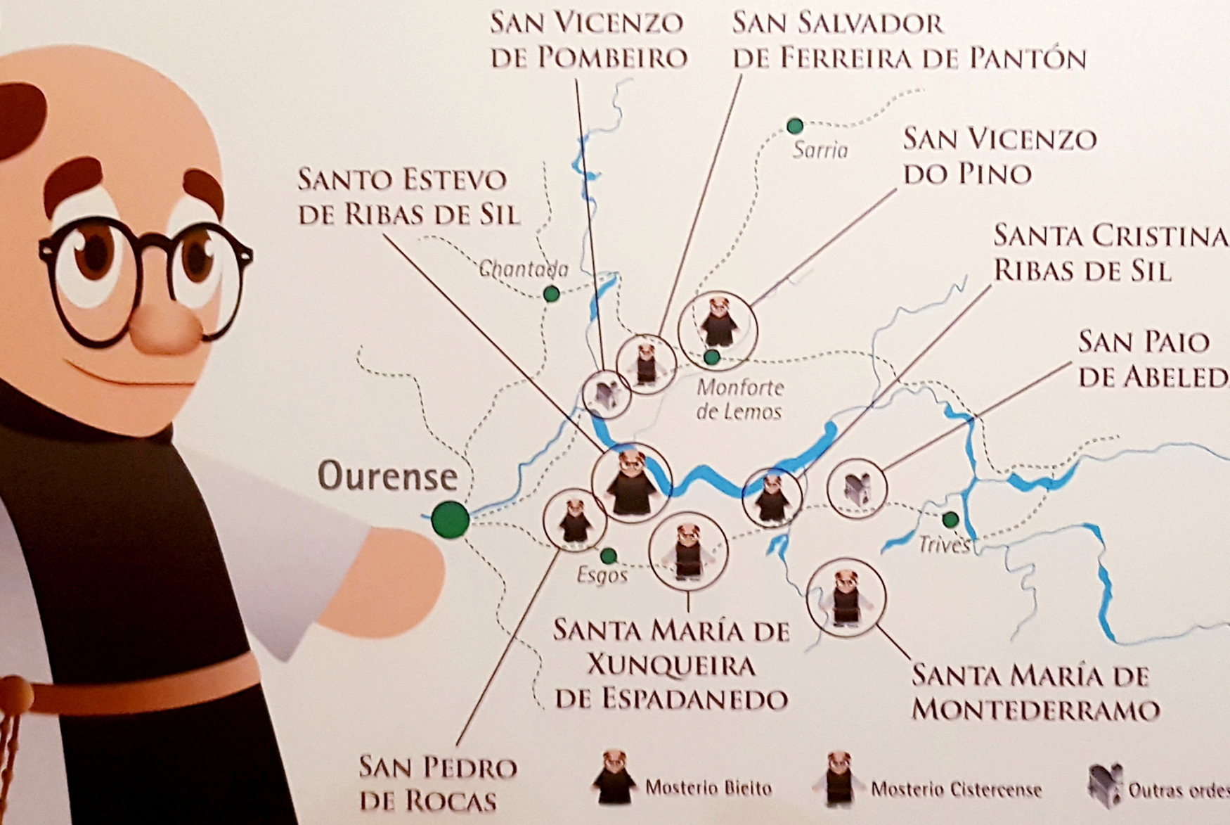 Red de monasterios románicos en Ribeira Sacra. |