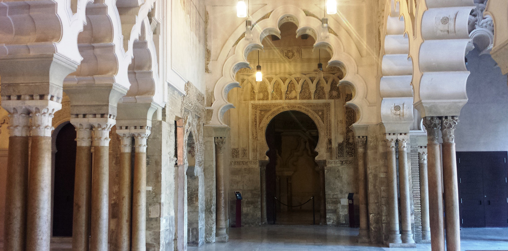 Interior del Palacio de la Aljfería. Al fondo, entrada a la mezquita. |